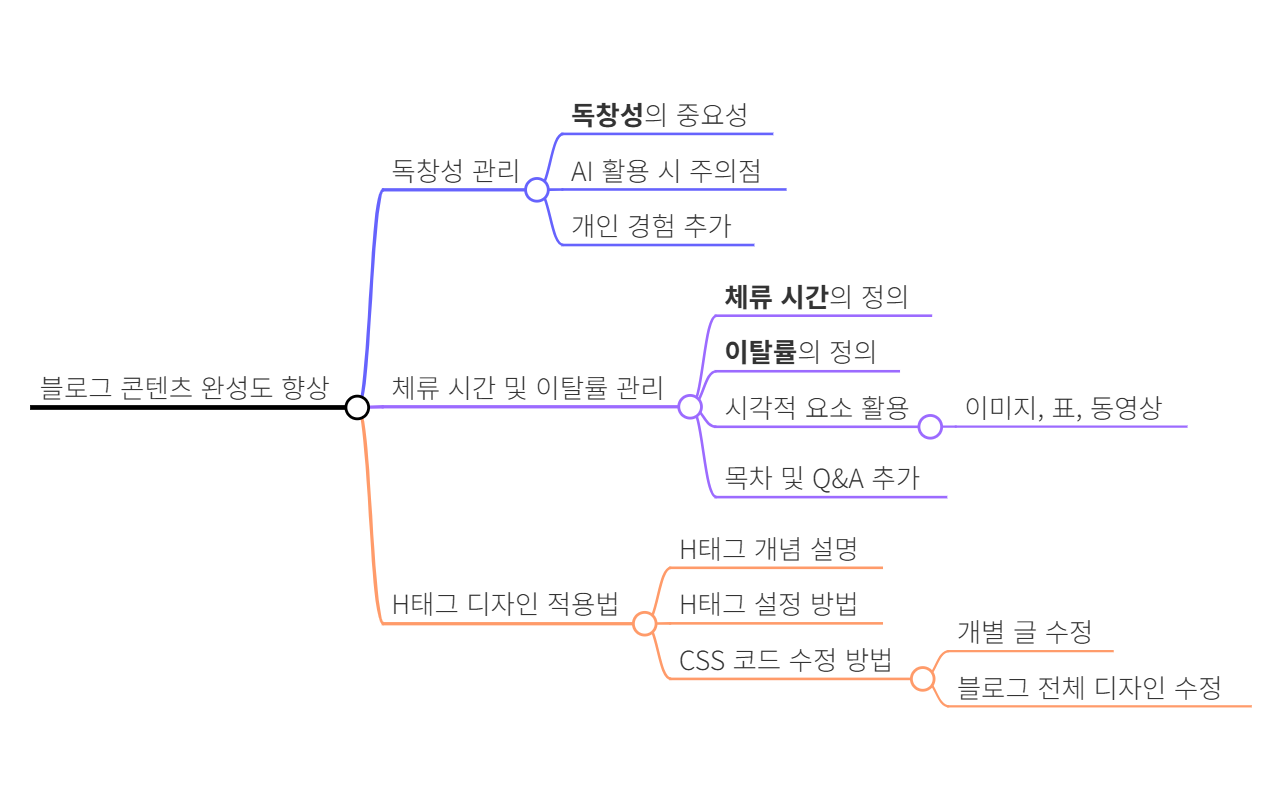 오늘 배운 것처럼, 독창성을 높이고, 사람들이 오래 머물게 하고, 빨리 나가지 않게 관리하는 것은 정말 중요해요.- AI가 준 글에 내 경험과 사진을 더해 나만의 색깔을 입히고, 그림이나 표, 영상, 목차, Q&A 같은 것들을 잘 활용하면 글이 훨씬 풍성해져요.
