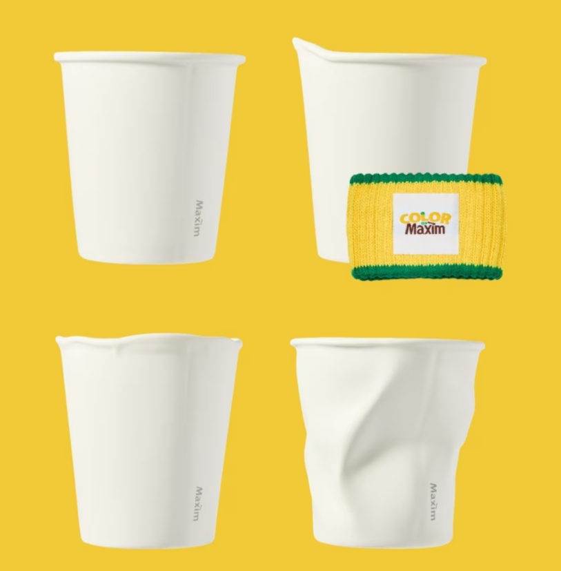 단순히 모양만 흉내 낸 게 아니라, MCTI(Maxim Coffee Type Indicator)라는 재미있는 콘셉트를 입혔습니다. 사람마다 종이컵을 사용하는 습관이 다르다는 점에 착안해 컵의 모양을 변형시킨 건데요, 이 디테일이 정말 "킹받으면서도 귀여운" 포인트입니다.