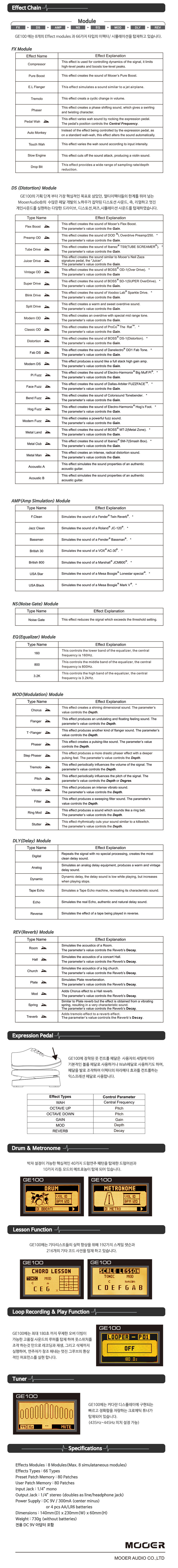 GE100은 다양한 기타 효과를 만들고 연습을 도와주는 강력한 도구입니다. 처음 사용하는 분들을 위해 복잡한 용어는 빼고 꼭 필요한 내용만 쉽게 설명해 드릴게요.