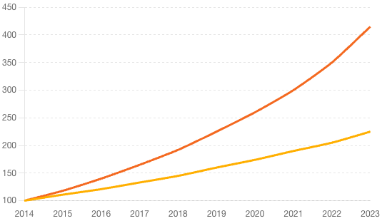 그래프 시각화 아래 그래프는 지난 10년간 SCHD와 QQQ의 수익률을 비교한 것입니다. 이를 통해 두 ETF의 성과를 한눈에 파악할 수 있습니다.
